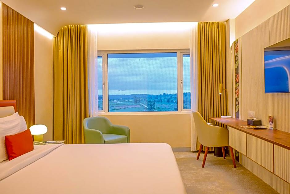 These larger rooms offer a personal safe and features views of the hill and amusement park.